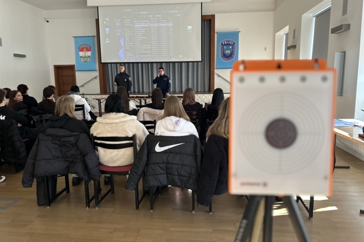 A tájékoztatást követően a diákok lézerfegyverrel tesztelhették célbalövő képességüket, és a részegszemüveget is kipróbálhatták. A kapitányság közrendvédelmi osztályának munkatársa, Tivadari Márk r. főtörzsőrmester tartott intézkedéstaktikai foglalkozást a diákok bevonásával.